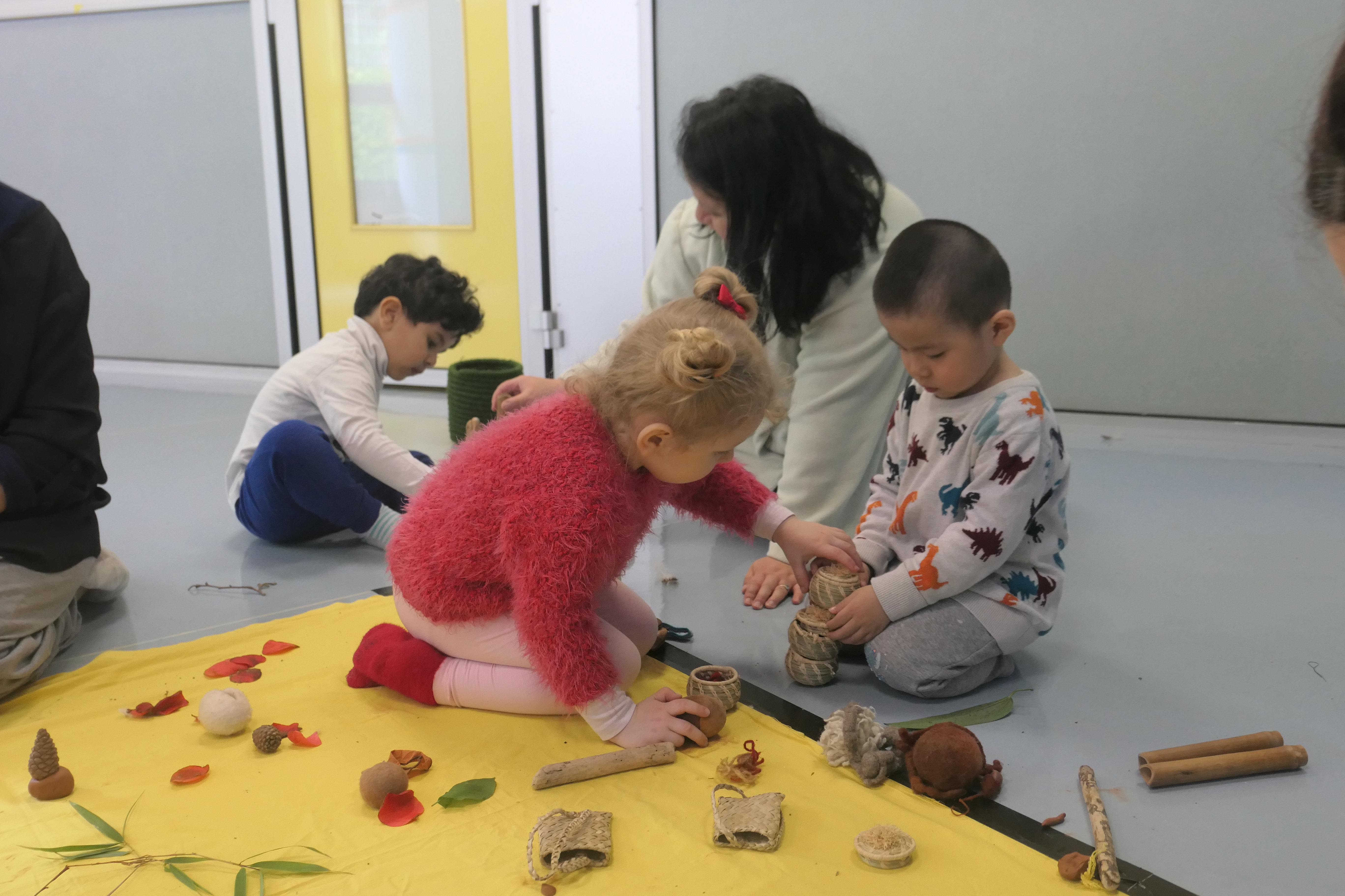 Lors de cet atelier, nous créerons une petite installation végétale faites d’éléments naturels divers (feuilles, branches, fleurs, marrons, pommes de pin). Chaque matière sera l’occasion d’explorer les sons, les mouvements, les manipulations, les agencements, les sensations qu’elle inspire sur le mode du jeu libre, de la performance plastique et musicale improvisée tous ensemble.