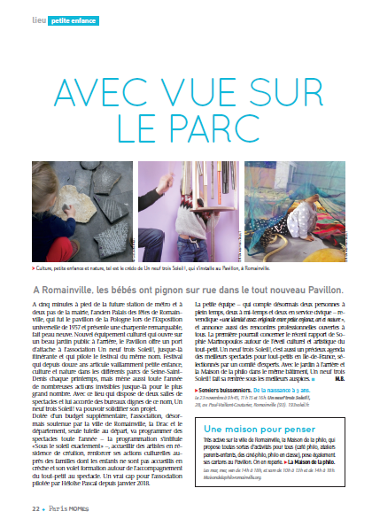 Retrouvez les articles de presse qui présentent les activités de Un neuf trois Soleil !