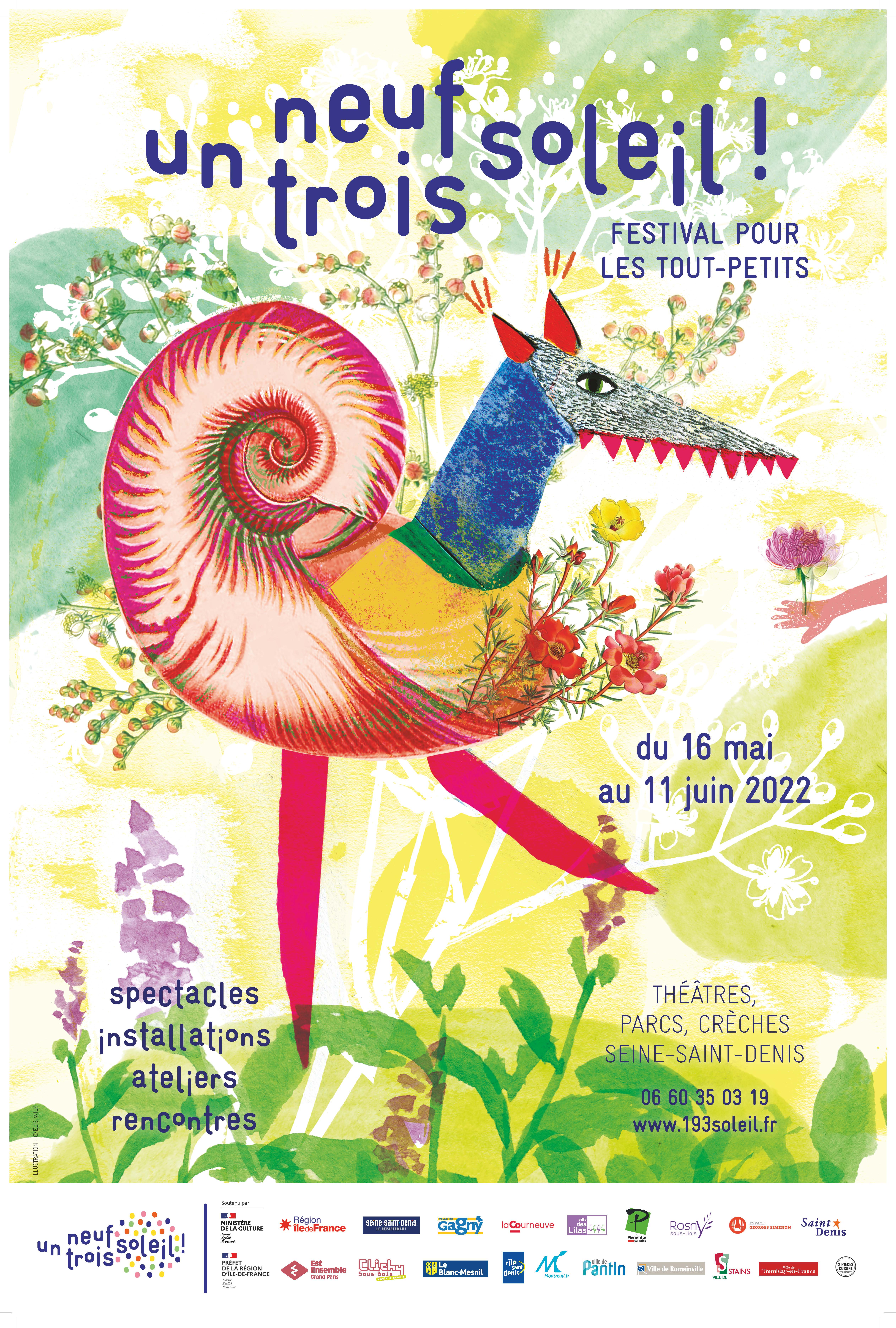 Une fois de plus, Elis Wilk signe l’identité visuelle du festival avec cette quatrième affiche au fond coloré et fleuri. Mi-loup, mi-escargot, cette nouvelle créature rejoint la famille des animaux hybrides des années précédentes.