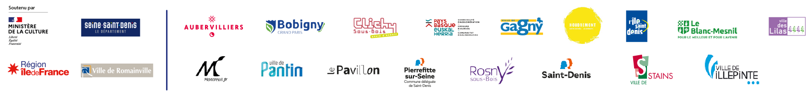Le Ministère de la Culture (Préfet de la Région Ile-de-France), le Département de la Seine-Saint-Denis, la Région Île-de-France; les villes de Aubervilliers, Bobigny, Clichy-sous-Bois, Gagny, L’Île-Saint-Denis, Le Blanc-Mesnil, Les Lilas, Montreuil, Pantin, Pierrefitte-sur-Seine, Romainville, Rosny-sous-Bois, Saint-Denis, Stains et Villepinte ; ainsi que le Centre culturel Houdremont de La Courneuve et Le Pavillon de Romainville.